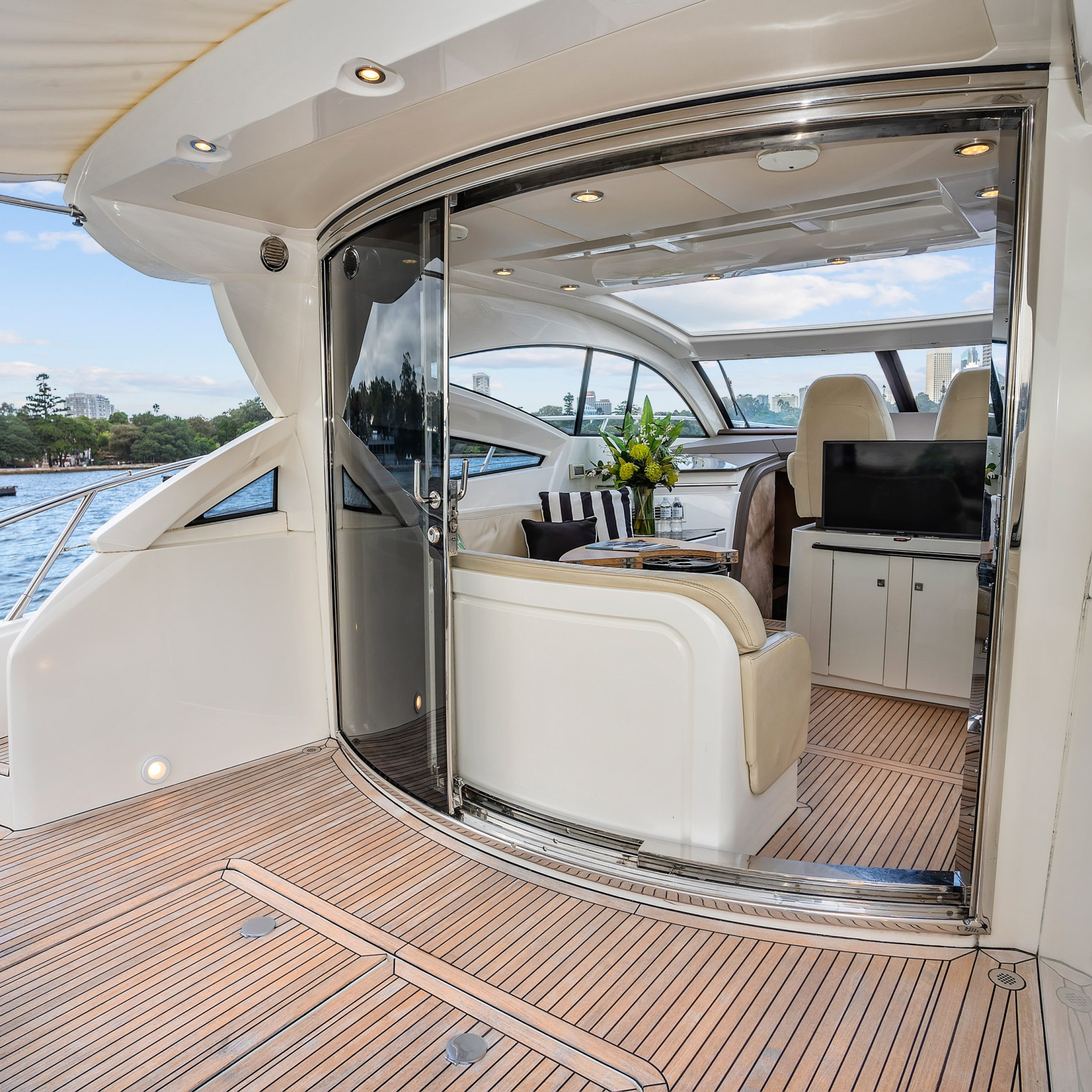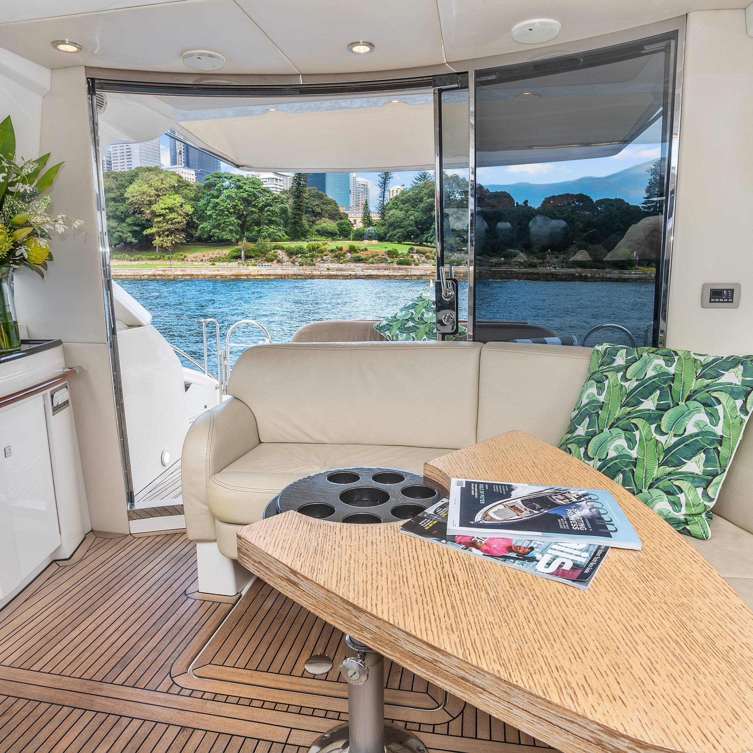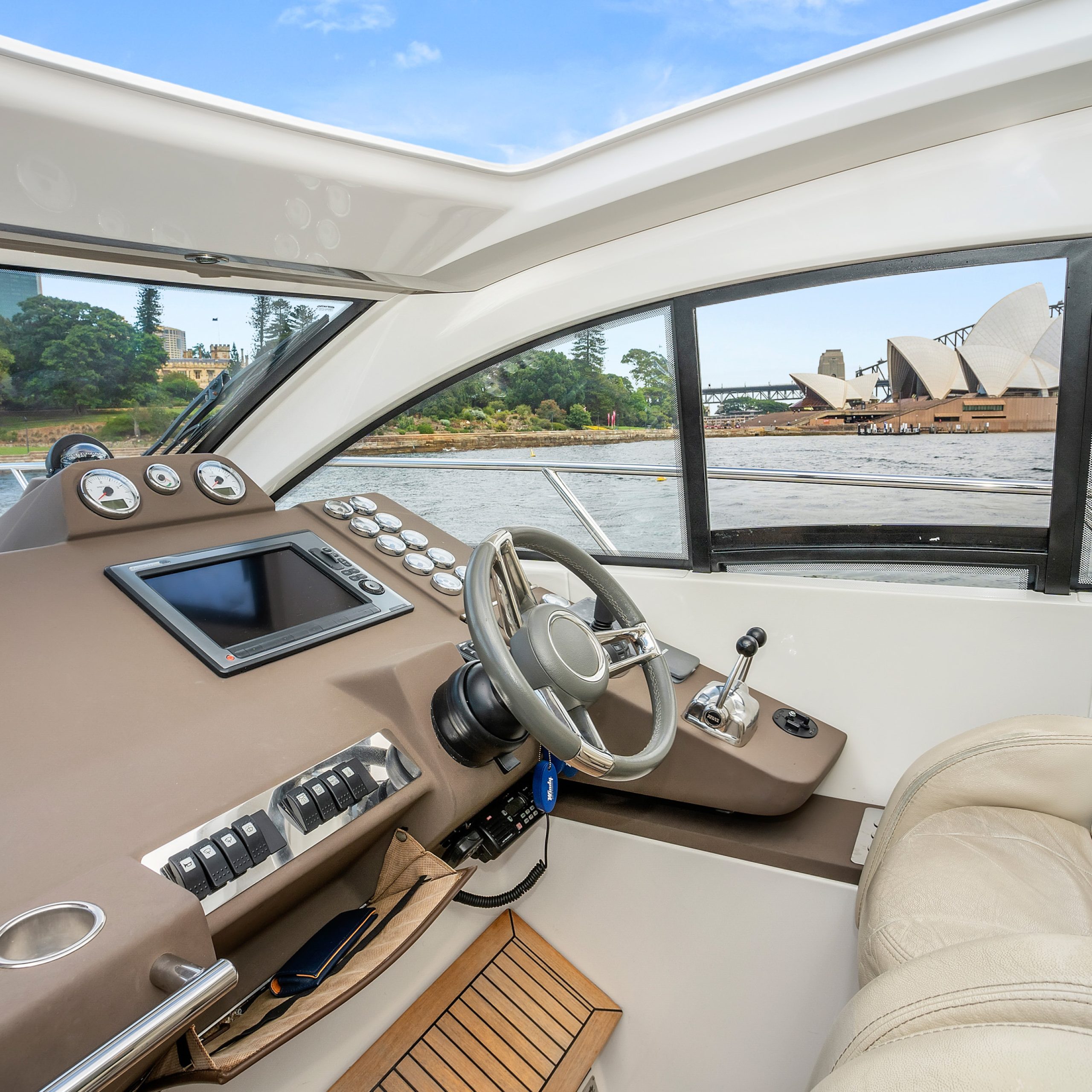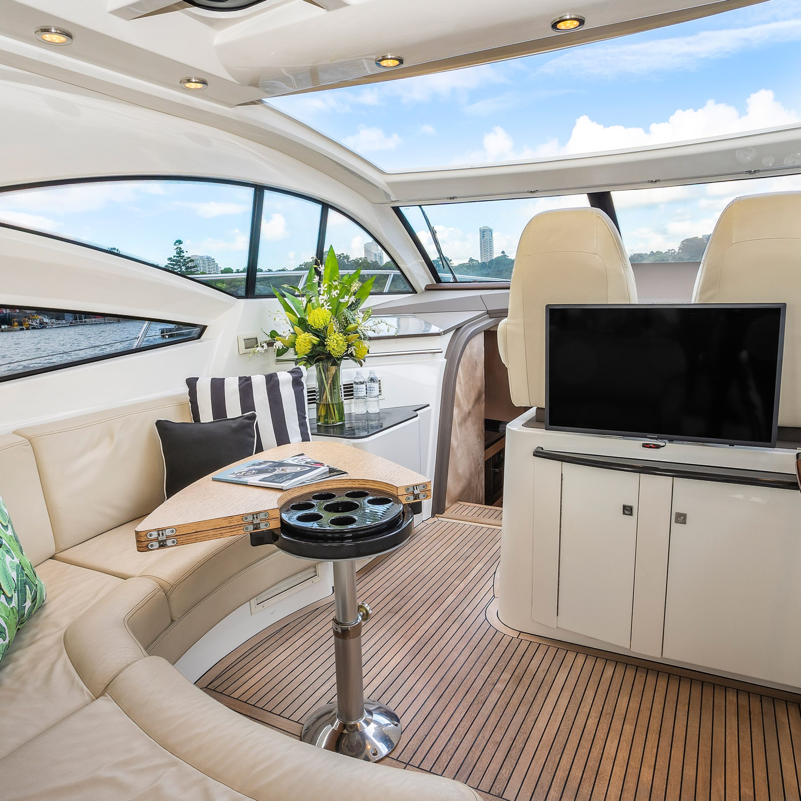 The upper deck features a light and spacious saloon, with a large electric sunroof and the cockpit doors wide open; you’re free to soak in some warm rays of sunshine and beautiful Harbour surrounds!