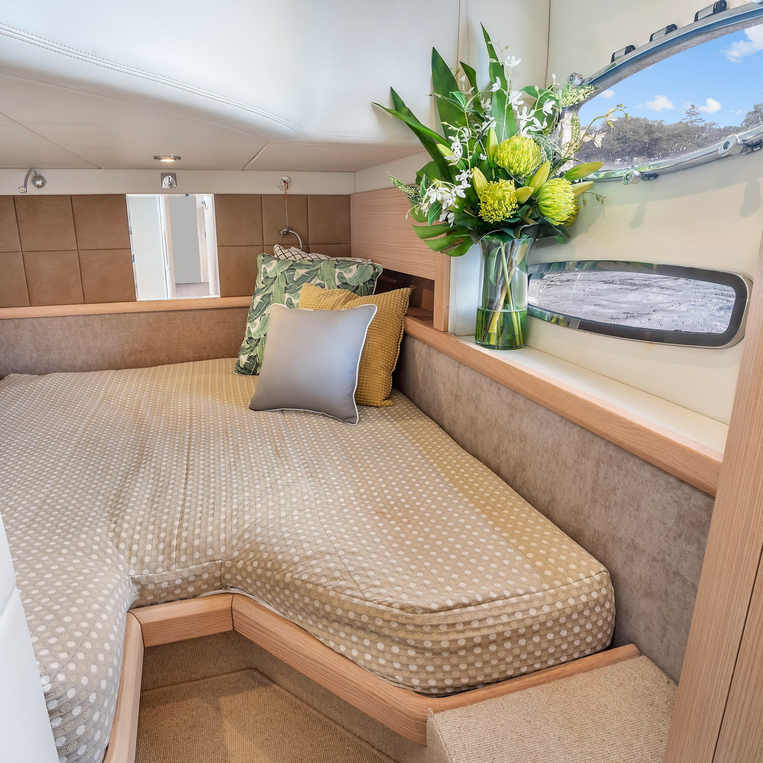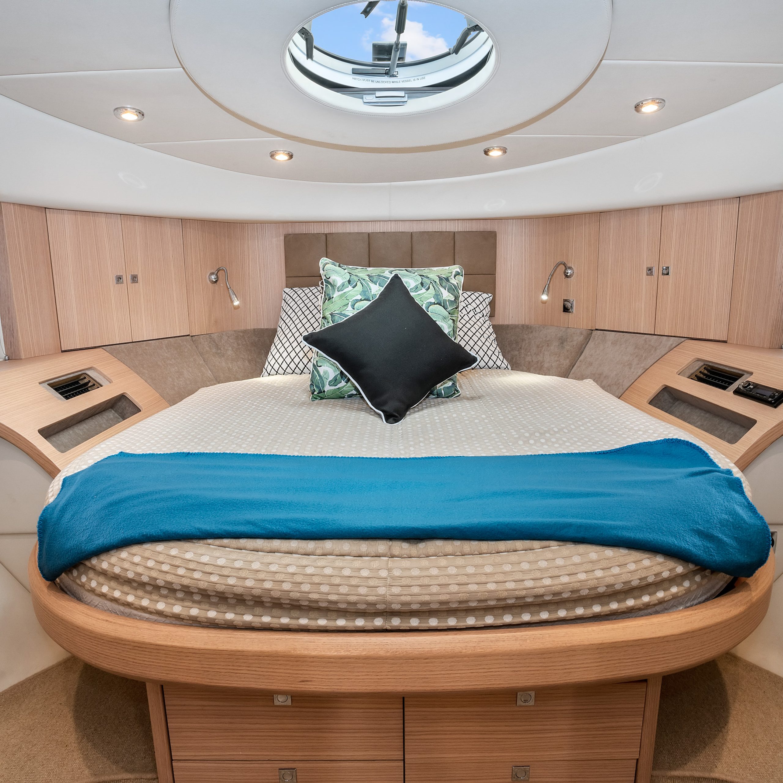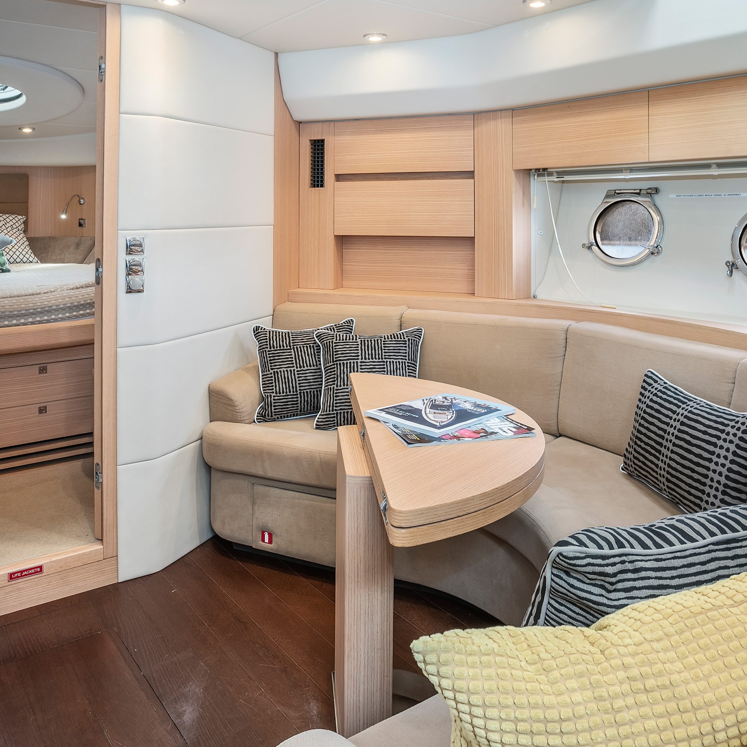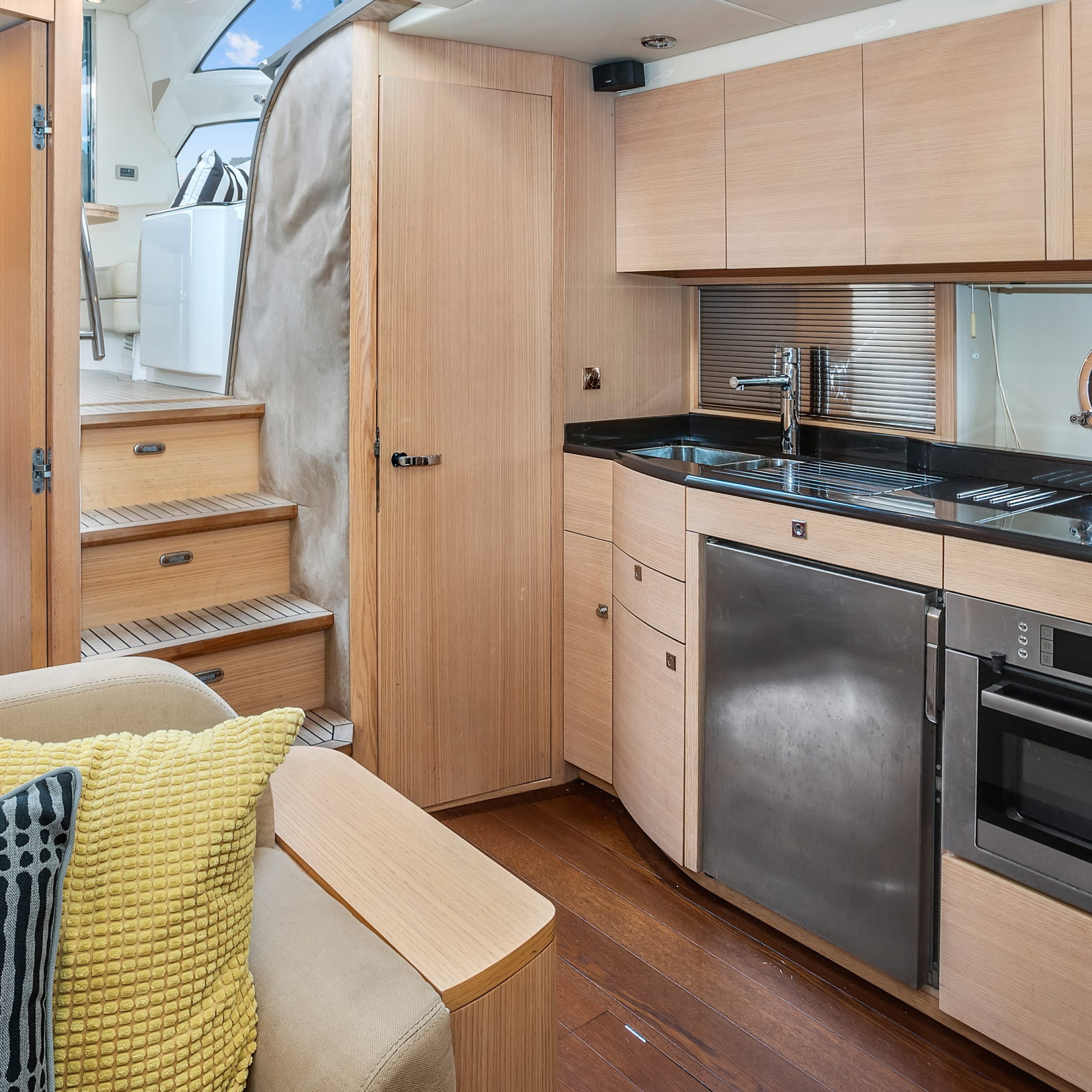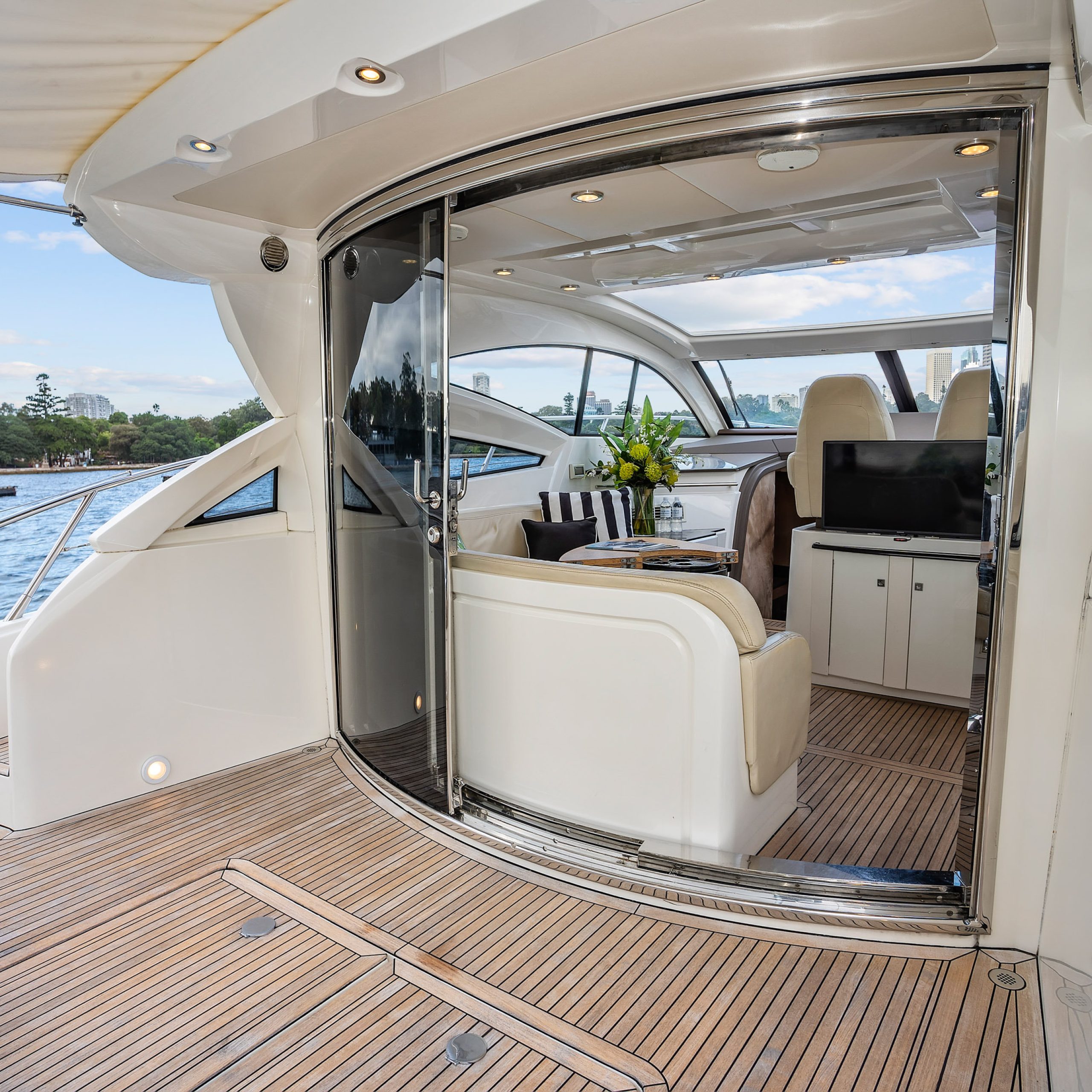 The upper deck features a light and spacious saloon, with a large electric sunroof and the cockpit doors wide open; you’re free to soak in some warm rays of sunshine and beautiful Harbour surrounds!