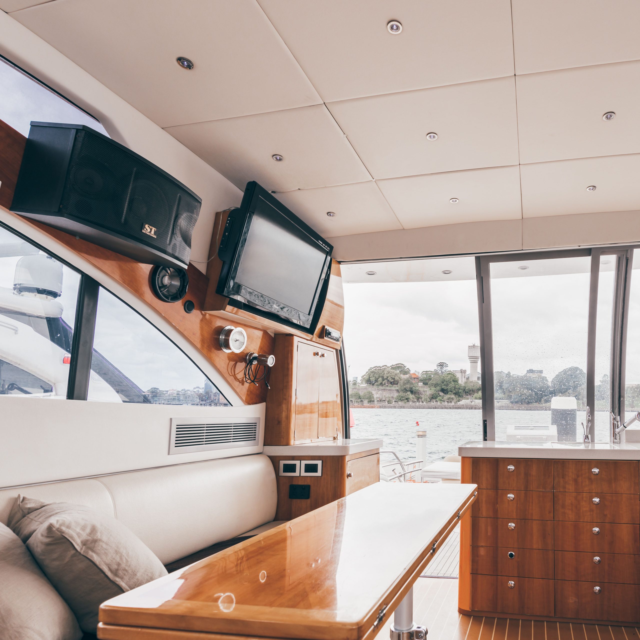 COCO is a slick cruiser for a stylish day out on the Harbour. Coco is a Genesis Sports Yacht boasting beautiful aesthetics and a terrific interior space with lounges to offer different social areas for bigger groups. The front sun bed is perfect sunbaking real estate which is great value on cruisers like this. It’s a lovely boat for families wanting a special day out or for work colleagues to have a rewarding experience.