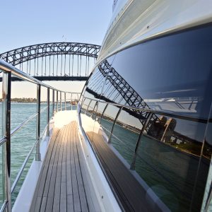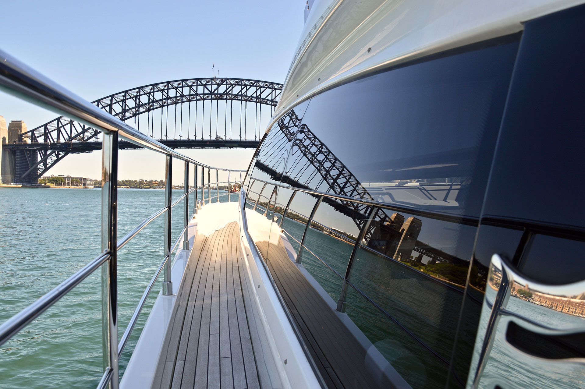 The all brand new 550 Ferretti “The Ribbon” charter boat on Sydney Harbour. A masterpiece, renewed – and ready to win new admirers. Savour the sea in ways you never imagined, with this restyle of one of the best-loved models in the fleet. Her most innovative features have been further enhanced with an even more exclusive interior design, in partnership with prestigious names from the Italian luxury scene.